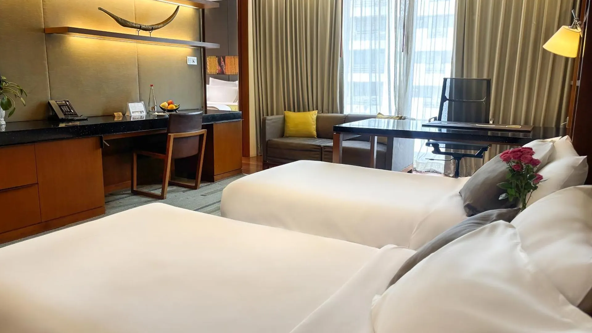 Alguns quartos incluem vestuário e zona de refeições com controle individual do ar condicionado e sistema de aquecimento central, juntamente com TV de tela plana com canais via satélite e Wi-Fi. Juntamente com janelas a prova de som, têm também escrivaninha. Os hóspedes podem usar chuveiro, juntamente com secador de cabelo e lençóis de banho. Certas unidades têm vista para o lago.
